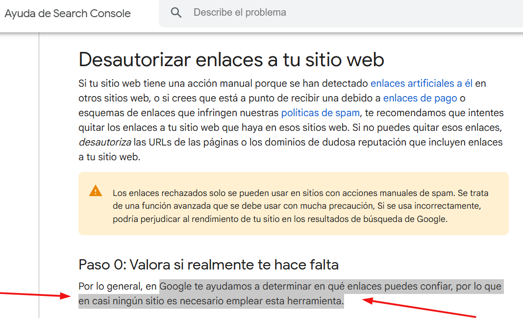 Si Google te ha penalizado por tener “enlaces no naturales”, desautorizar es prácticamente el único paso para empezar a corregir la situación, junto con una limpieza previa.